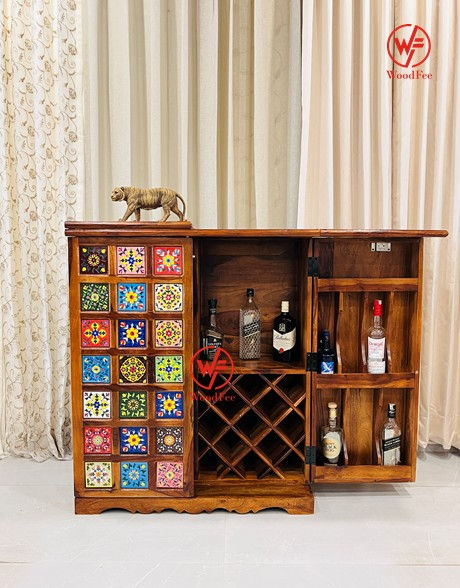 Sheesham Wood Bar Cabinet Crafted from premium Sheesham wood, this elegant Ceramic Bar Cabinet is designed to bring a touch of sophistication to any home or office.